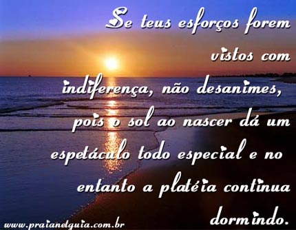 Quando fizeres algo nobre e belo e ninguém notar, não fique triste. Pois o sol toda manhã faz um lindo espetáculo e no entanto, a maioria da platéia ainda dorme! Feliz segunda-feira!