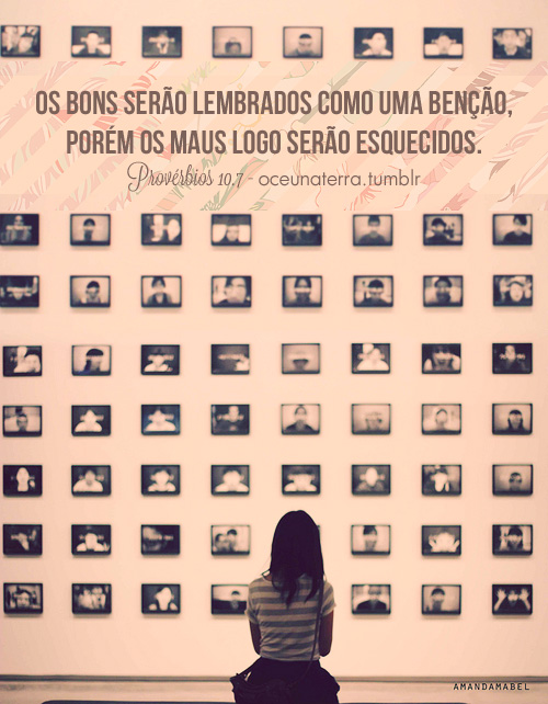Os bons serão lembrados como uma benção, porém os maus logo serão esquecidos. Provérbios 10.7