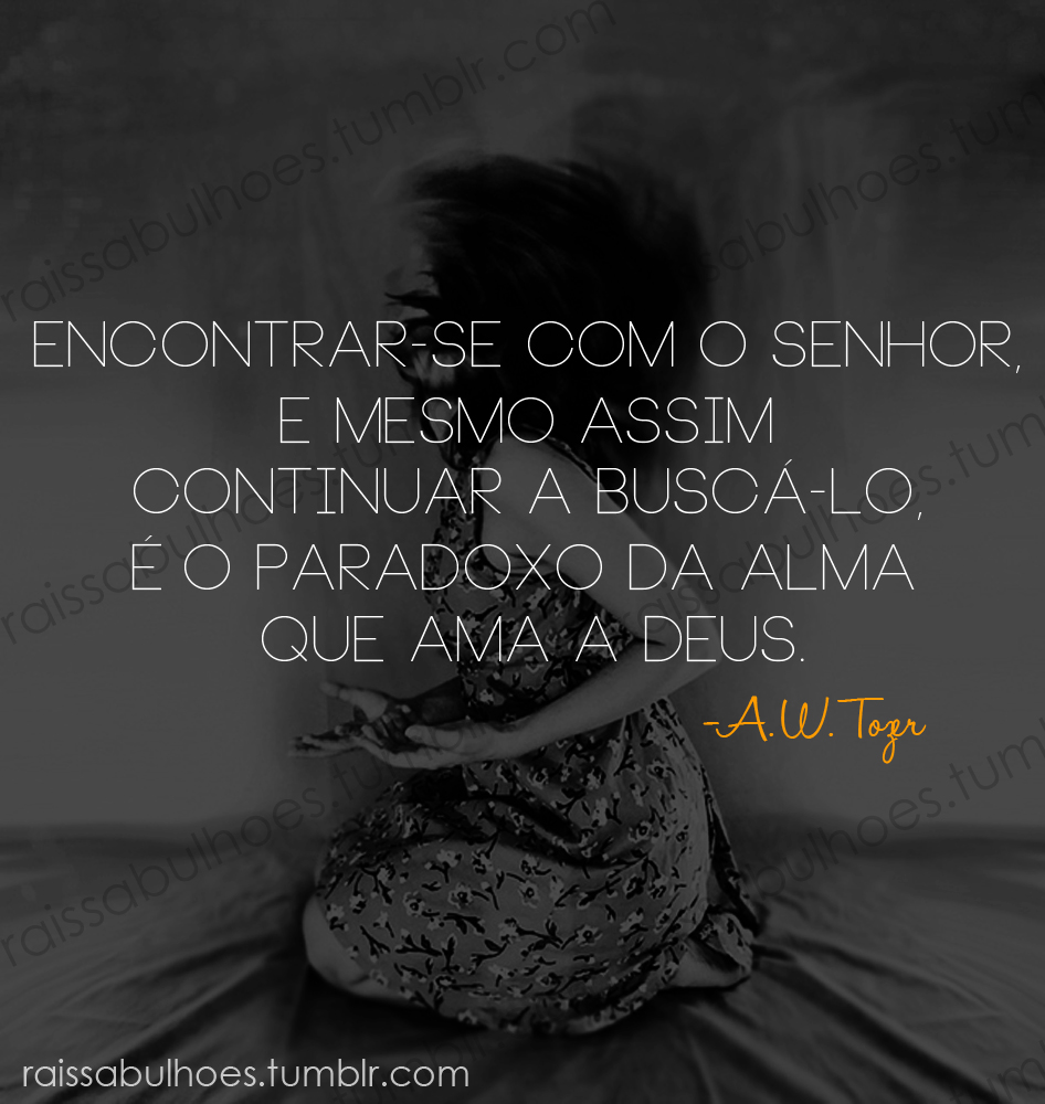 “Encontrar-se com o Senhor, e mesmo assim continuar a buscá-lo, é o paradoxo da alma que ama a Deus.” A. W. Tozer