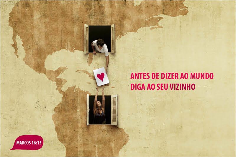 Antes de dizer ao mundo diga ao seu vizinho E disse-lhes: Ide por todo o mundo, pregai o evangelho a toda criatura. Marcos 16.15