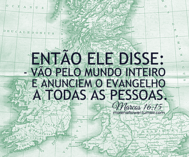 Então ele disse: Vão pelo mundo inteiro e anunciem o Evangelho a todas as pessoas. Marcos 16.15