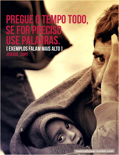 Pregue o tempo todo, se for preciso, use palavras. Exemplos falam mais alto. (@Jesus_copy)