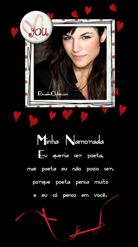Minha namorada, eu queria ser poeta, mas poeta eu não posso ser, porque poeta pensa muito e eu só penso em você.