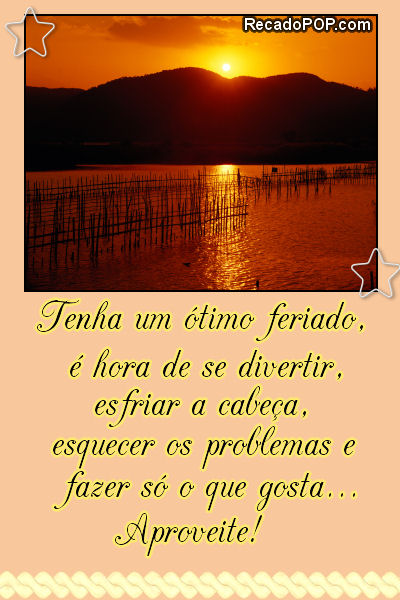 Sexta-feira e feriado… que combinação mais perfeita! Aproveite! Que seja tudo de bom!