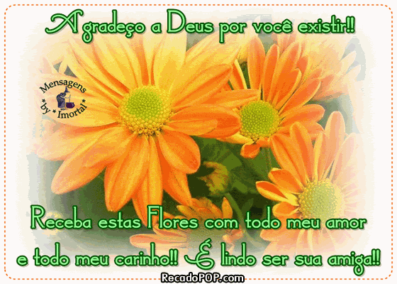 Agradeço a Deus por você existir! Receba estas flores com todo meu amor e todo meu carinho! É lindo ser sua amiga!