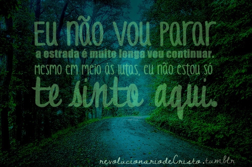 Eu não vou parar a estrada é muito longa, vou continuar, mesmo em meio às lutas eu não estou só, te sinto aqui.