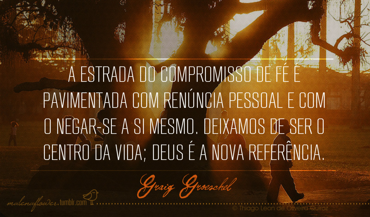 A estrada do compromisso de fé é pavimentada com renúncia pessoal e com o negar-se a si mesmo, deixamos de ser o centro da vida; Deus é a nossa referência. (Graig Groeschel)
