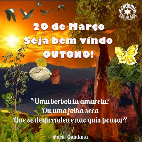 20 de março Seja bem vindo, outono Uma borboleta amarela? Ou uma folha seca Que se desprendeu e não quis pousar? (Mario Quintana)