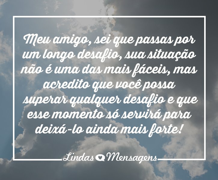 Você pode passar por grandes desafios, mas você irá superar e vai ser cada dia mais confiante, não desanime!