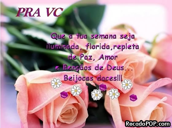 Categorias Boa Semana Tags Amor, beijoca, bençãos, bençãos de Deus, começo de semana, Florida, iluminada, inicio de semana, Linda semana, Ótima semana, ótima semana pra você, Paz, repleta, rosas, sua semana, Te desejo, uma boa semana, uma linda semana, uma semana linda, uma semana maravilhosa