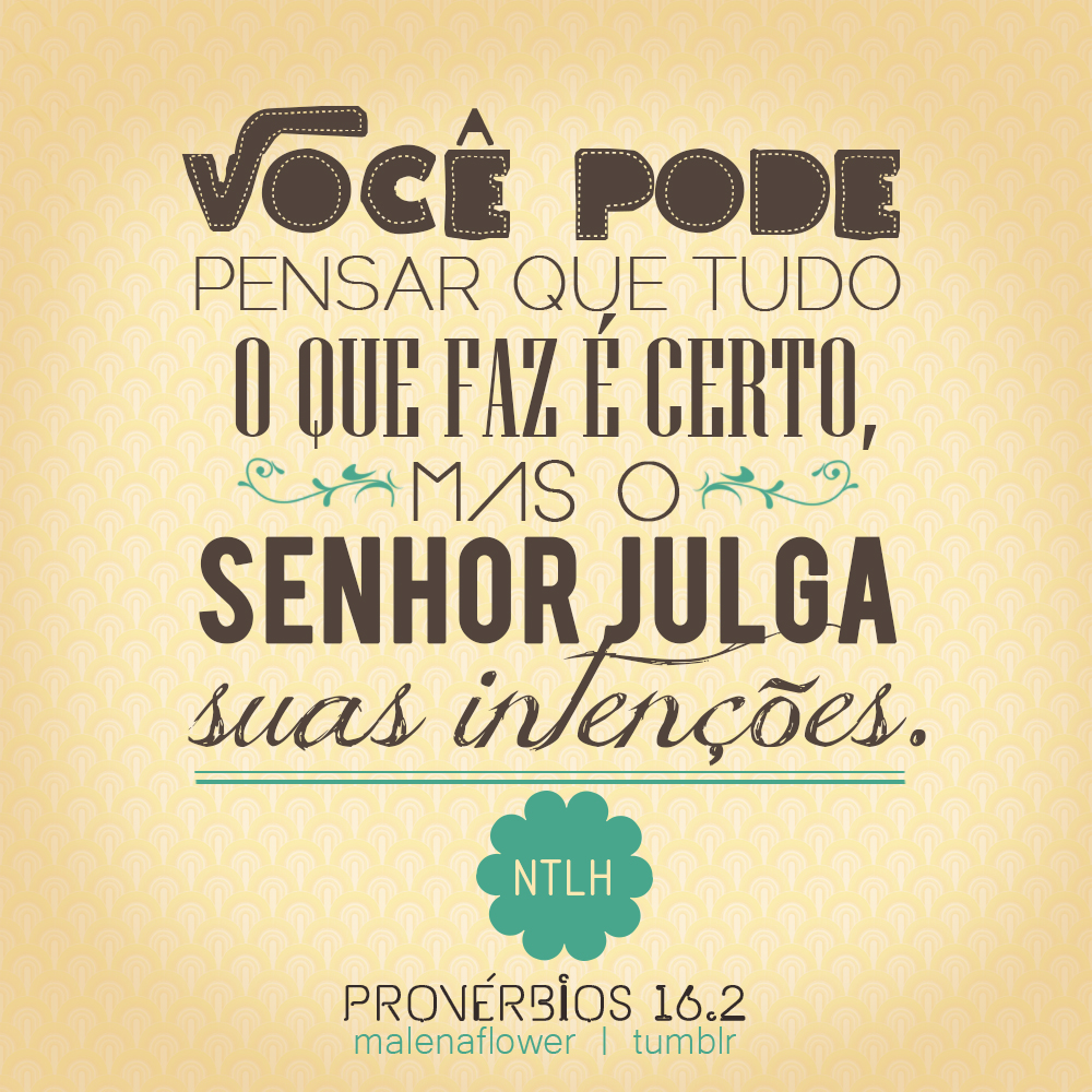 Todos os caminhos do homem são puros aos seus olhos, mas o SENHOR pesa o espírito. Provérbios 16.2