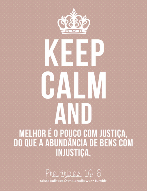 Keep calm and “Melhor é o pouco com justiça do que a abundância de bens com injustiça.” Provérbios 16.8
