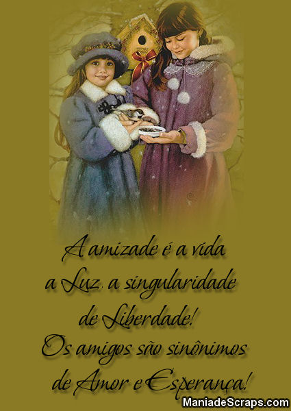 A amizade é a vida, a luz, a singularidade da liberdade! Os amigos são sinônimos de amor e esperança!