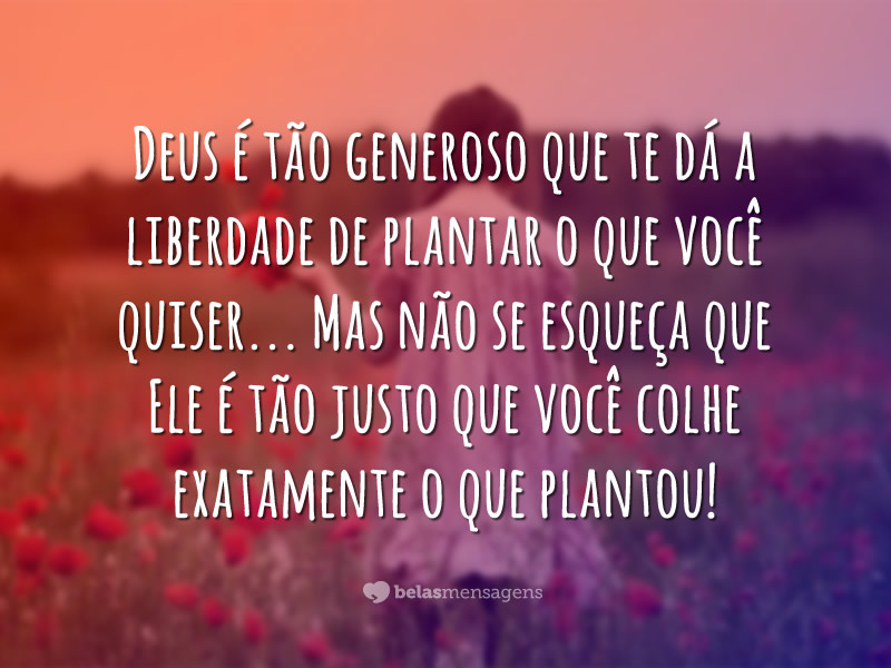 A generosidade de Deus é imensa, ele deixa você fazer as suas escolhas, mas Ele é justo para você colha o que plantou!
