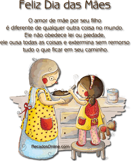Feliz dia das mães! O amor de mãe por seu filho é diferente de qualquer outra coisa no mundo. Ele não obedece lei ou piedade, ele ousa todas as coisas e extermina sem remorso tudo o que ficar em seu caminho.