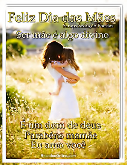 Feliz dia das mães! Ser mãe é algo divino! É um dom de Deus. Parabéns mamãe, eu amo você!