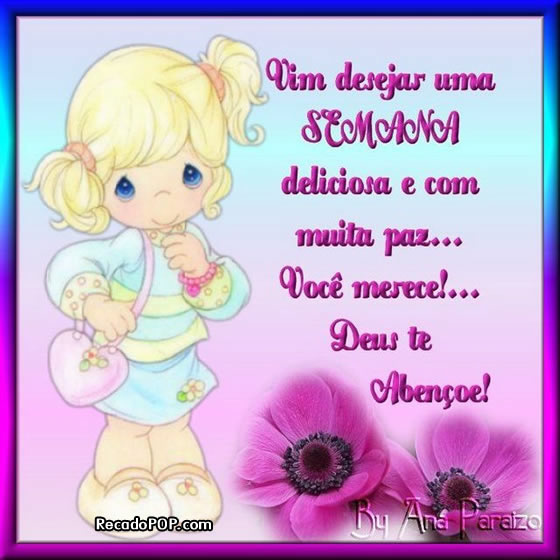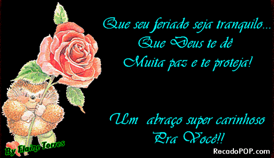 Doce fim de semana! Que Deus lhe abençoe e proteja, dando-lhe paz, amor, saúde e felicidade. Obrigada pelo seu carinho!