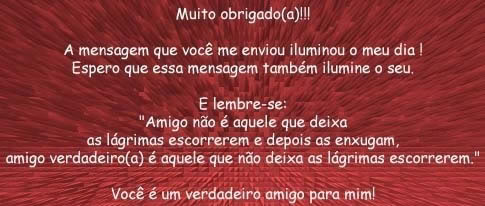Categorias Amizade Tags agradecimento, amiga, amigo, Dia, enxugam, iluminou, lágrimas, lágrimas escorrerem, mensagem, meu dia, muito obrigado, verdadeiro amigo, vermelho