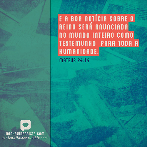 E a boa notícia sobre o Reino será anunciada no mundo inteiro como testemunho para toda a humanidade. Mateus 24.14