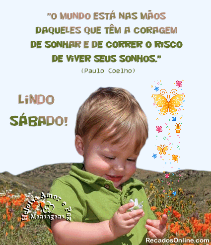 “O mundo está nas mãos daqueles que tem a coragem de senhar e de correr o risco de viver seus sonhos.” Paulo Coelho Lindo sábado!