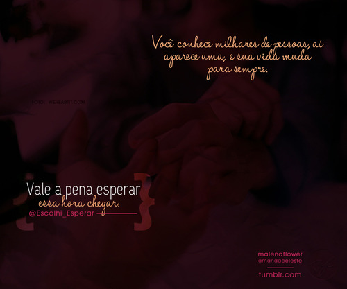 Você conhece milhares de pessoas, aí aparece uma, e sua vida muda para sempre. Vale a pena esperar, essa hora chega.