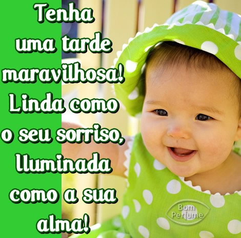 Tenha uma tarde maravilhosa! Linda como o seu sorriso, iluminada como a sua alma!