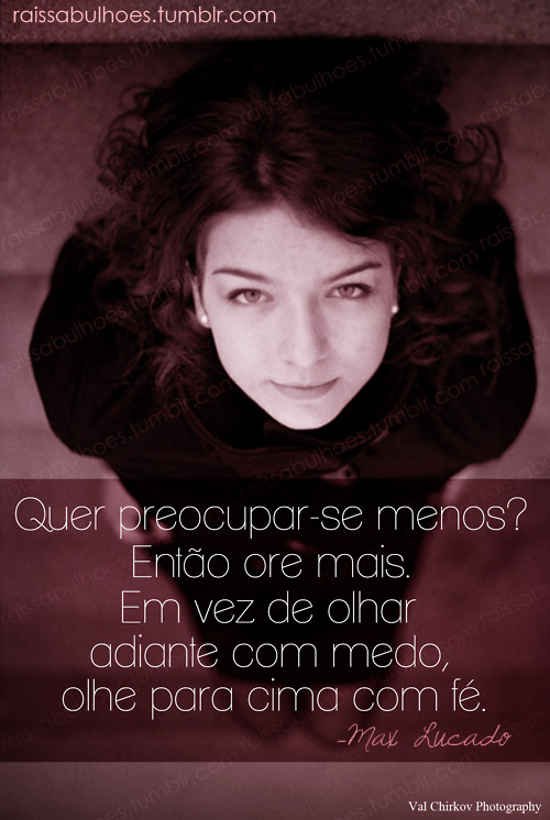 Quer preocupar-se menos? Então ore mais. Em vez de olhar adiante com medo, olhe para cima com fé. (Max Lucado)