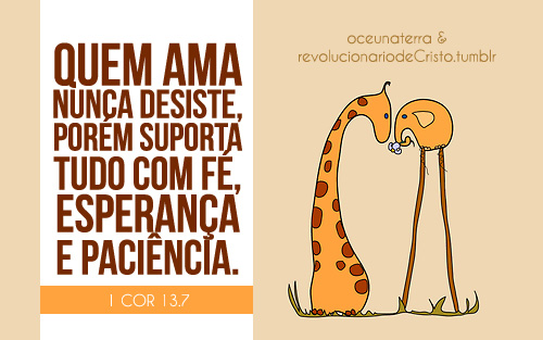 Quem ama nunca desiste, porém suporta tudo com fé, esperança e paciência. 1 Coríntios 13.7