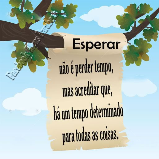 Esperar não é perder tempo, mas acreditar que, há um tempo determinado para todas as coisas.