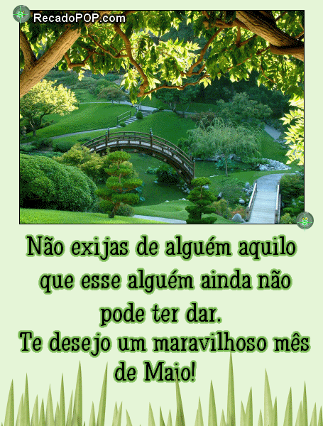 Não exijas de alguém aquilo que esse alguém ainda não pode te dar. Te desejo um maravilhoso mês de maio!