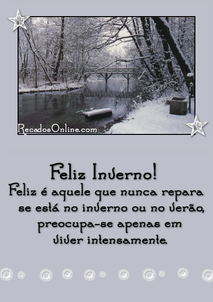 Feliz inverno! Feliz é aquele que nunca repara se está no inverno ou no verão, e preocupa-se apenas em viver intensamente.