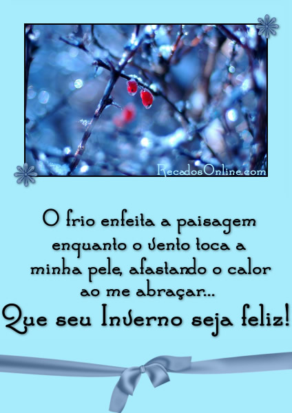 O frio enfeita a paisagem enquanto o vento toca a minha pele, afastando o calor ao me abraçar… Que seu inverno seja feliz!