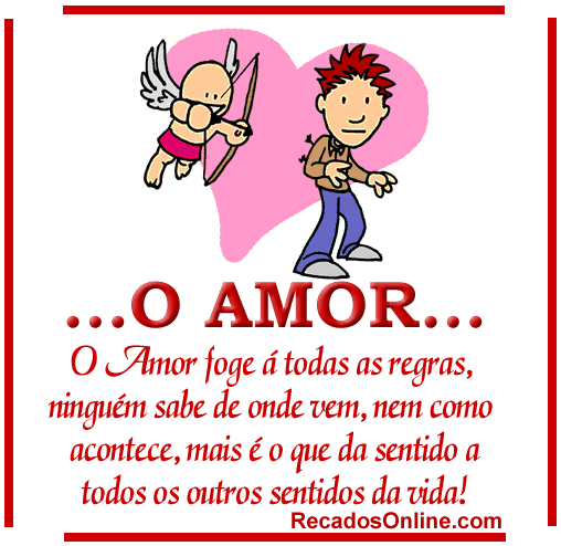 O amor… O amor foge à todas as regras, ninguém sabe de onde vem, nem como acontece, mais é o que dá sentido a todos os outros sentidos da vida.