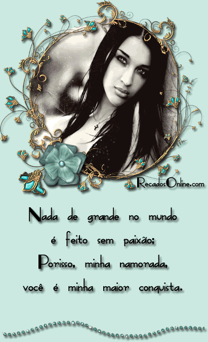 Nada de grande no mundo é feito sem paixão; por isso, minha namorada, você é minha maior conquista!