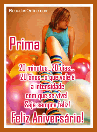 Categorias Aniversário Tags aniversario de 20 anos, feliz aniversário prima, parabéns pelos 20 anos, parabéns prima, prima feliz aniversário