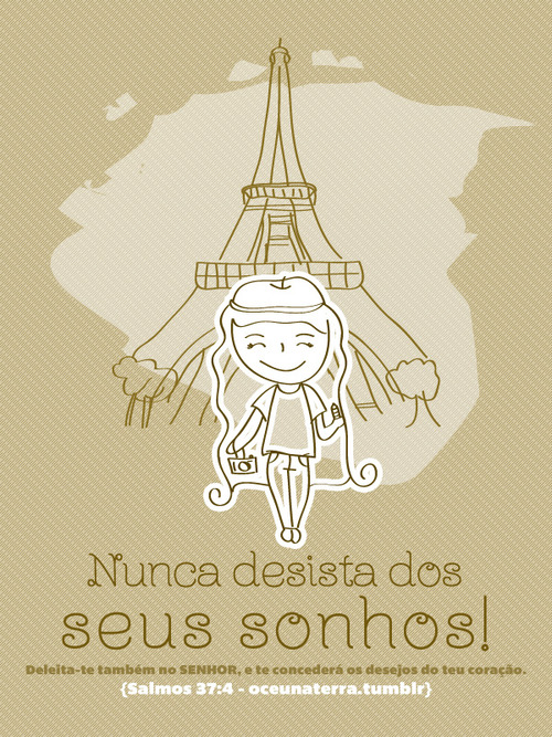 Nunca desista dos seus sonhos. Deleita-te também no Senhor, e te concederá os desejos do teu coração. Salmos 37.4