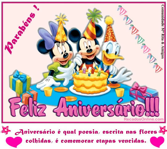 Parabéns, feliz aniversário! Aniversário é qual poesia, escrita nas flores colhidas, é comemorar etapas vencidas.