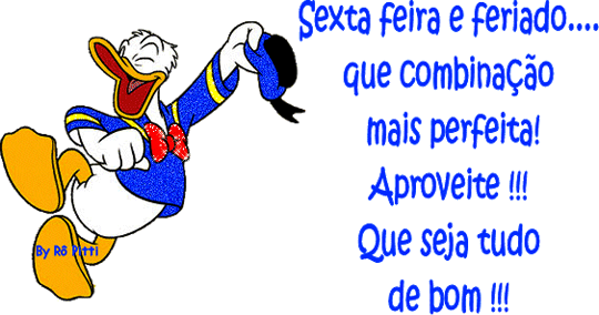 Sexta-feira e feriado… que combinação mais perfeita! Aproveite! Que seja tudo de bom!