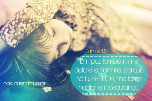 Em paz também deitarei e dormirei, porque só Tu Senhor, me fazes habitar em segurança. Salmos 4.8