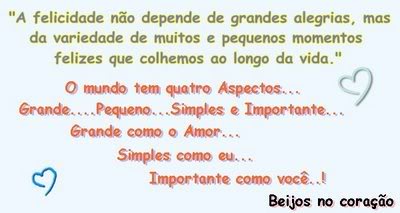 A felicidade não depende de grandes alegrias, mas de variedade de muitos e pequenos momentos felizes que colhemos ao longo da vida.
