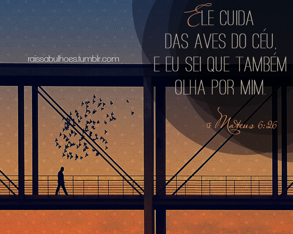 Ele cuida das aves do céu, e eu sei que também olha por mim. “Olhai para as aves do céu, que nem semeiam, nem segam, nem ajuntam em celeiros; e vosso Pai celestial as alimenta. Não tendes vós muito mais valor do que elas?” Mateus 6.26