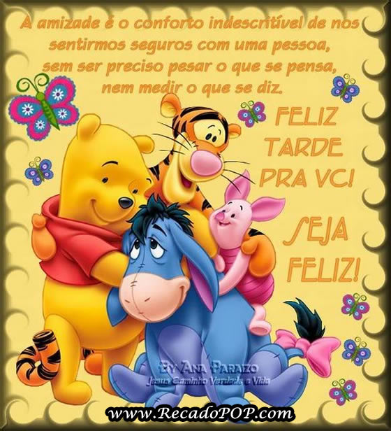 Categorias Boa Tarde Tags Alegria, amiga, amigo, Amizade, Boa Tarde, conforto, diz, dizer, feliz, feliz tarde, laranja, medir, pensa, pensar, pessoa, Pooh, preciso, segurança, seguro, seja feliz, sentir, tarde