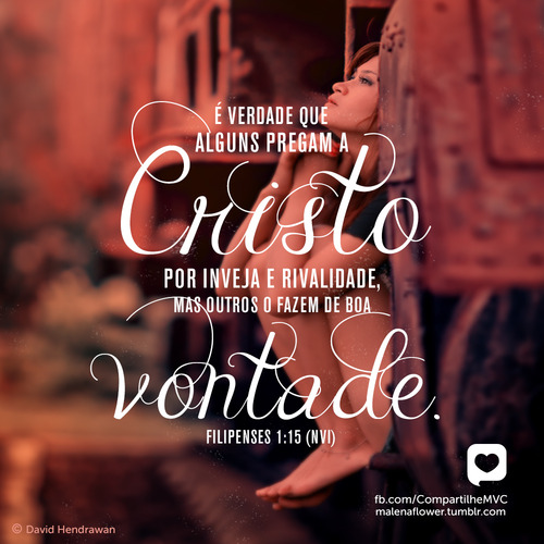 “É verdade que alguns pregam a Cristo por inveja e rivalidade, mas outros o fazem de boa vontade.” Filipenses 1.15
