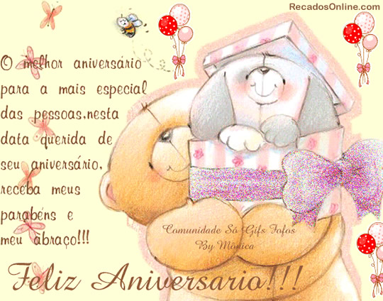 O melhor aniversário para a mais especial das pessoas Nesta data querida de seu aniversário, receba meus parabéns e meu abraço! Feliz aniversário!