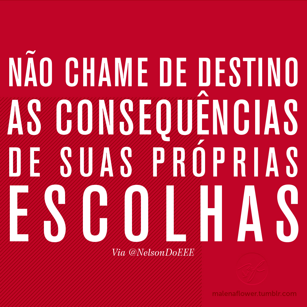 Não chame de destino as consequências de suas próprias escolhas. (@NelsonDoEEE)