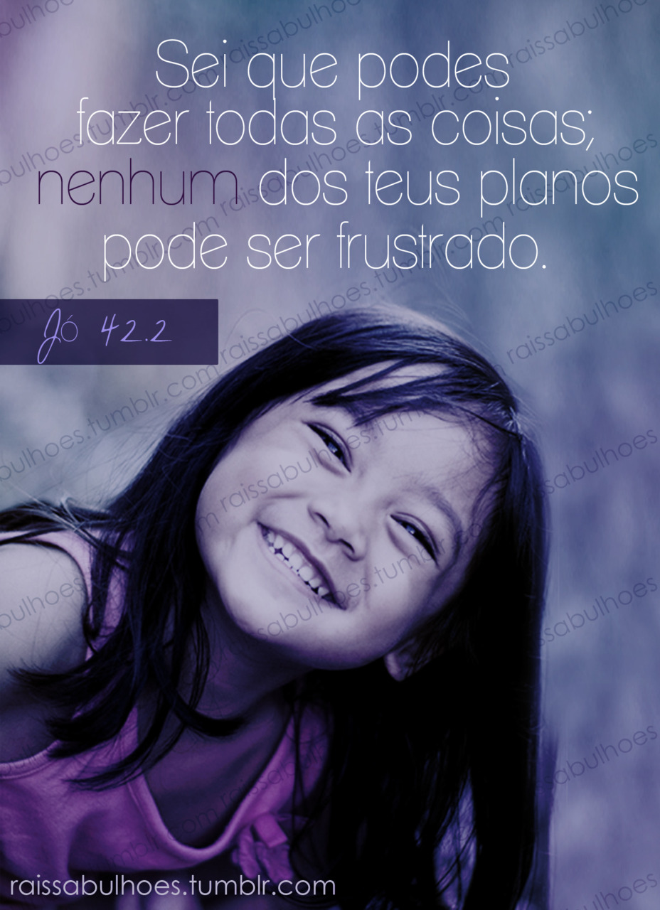 Sei que podes fazer todas as coisas; nenhum dos teus planos pode ser frustrado. Jó 42.2