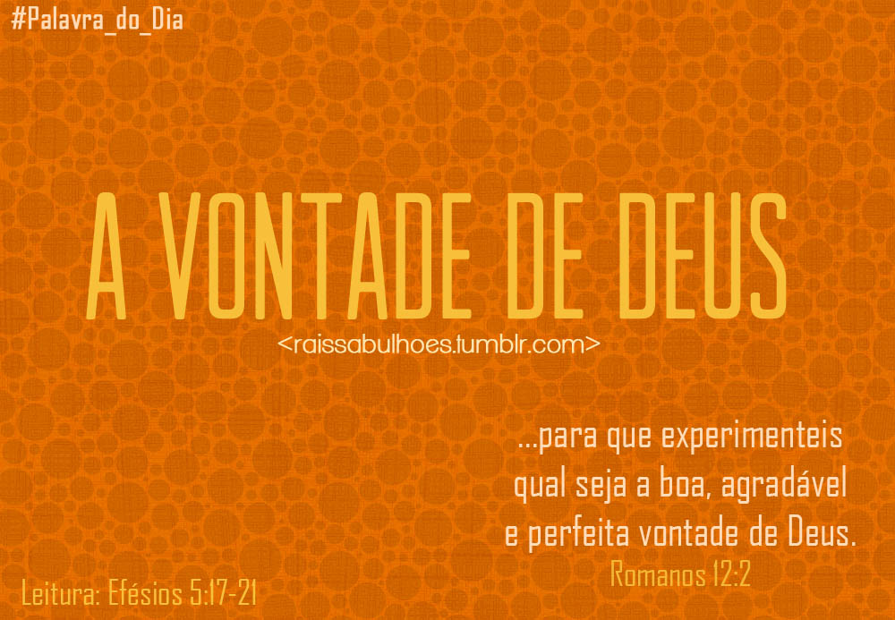 … para que experimentais qual seja a boa, agradável e perfeita vontade de Deus. Romanos 12.2