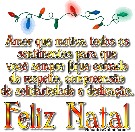 Amor que motiva todos os sentimentos para que você sempre fique cercado de respeito, compreensão, de solidariedade e dedicação. Feliz natal!