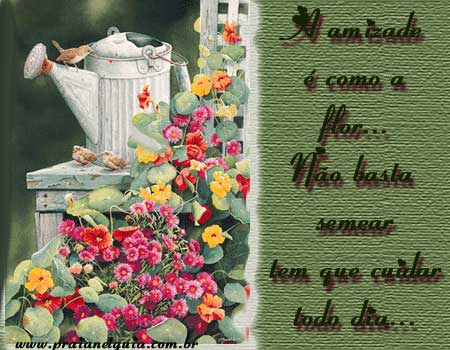 Plante amizade pra colher felicidade! 10 de janeiro de 2013 Por Rosane Se plantar uma semente da amizade colherá um ramo de felicidade.