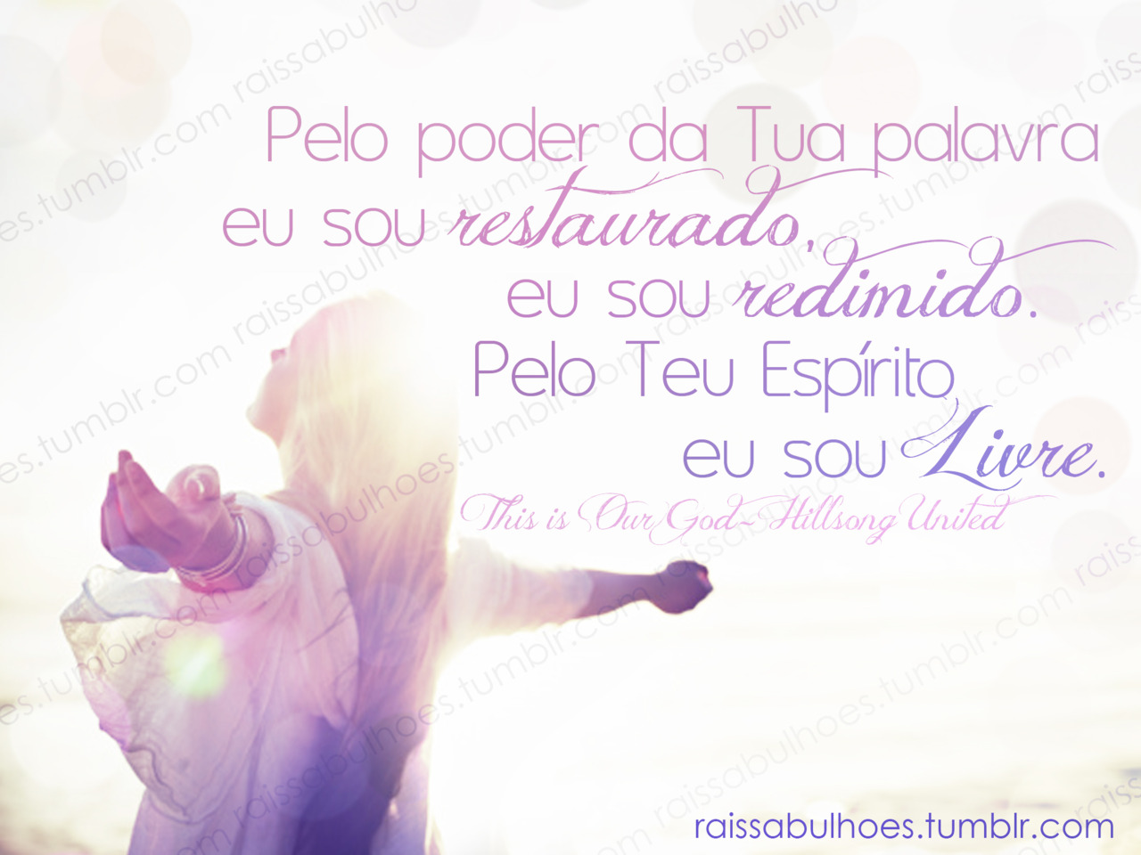 Pelo poder da Tua palavra eu sou restaurado, eu sou redimido. Pelo Teu Espírito, eu sou livre. (Hillsong United)